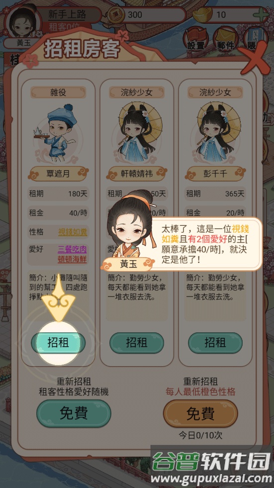 2、每位租客的个性与生活习惯都贴近古代背景,显得真实而生动。