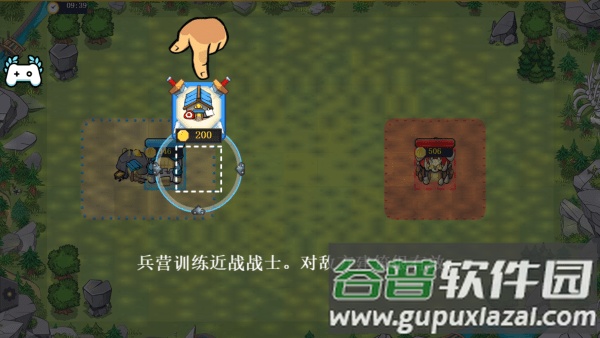 接着在主城前方建造兵营,用于招募士兵向敌人发起攻击。