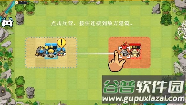 注意必须将兵营与敌方建筑用路径连接起来,士兵才能出动。