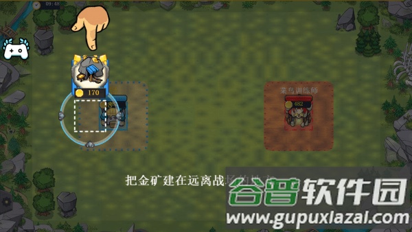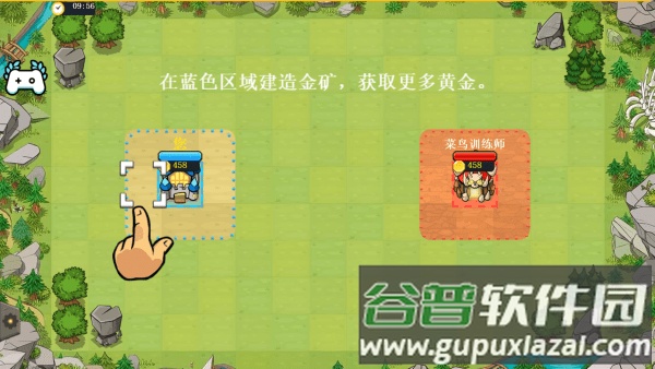 开局后点击己方空地,首先需要在自己的区域建造金矿。