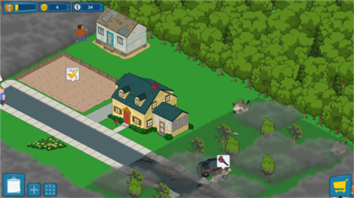 2、通过点击非玩家角色可以接取任务,比如重建房屋、购买裤子或帮助邻居;将任务图标拖到角色头上的气泡中,即可指派其执行;