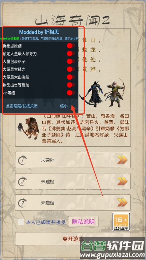 山海奇闻2折相思菜单版是一款以山海经为背景的文字冒险养成游戏。游戏体量丰富,剧情饱满,融合打怪升级与独特系统,玩家可体验养成守护玩法,解锁折相思菜单获得特别功能。