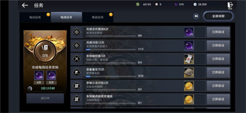 3. 每周任务:每周刷新,完成可获得丰厚回报。