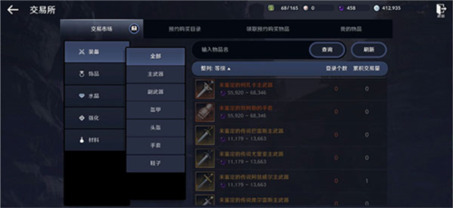 为方便查找,交易行设有详细分类。玩家可先通过左侧的大类进行筛选。