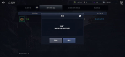 通过预约购买成功的道具,可以在交易行上方的“领取预约购买物品”处提取。
