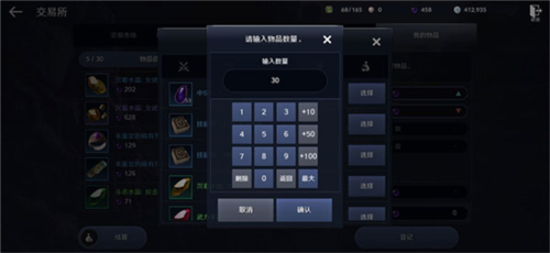 2、上架道具时需要设定出售数量与价格。点击“上限价”或“最低价”可以自动填入该道具在交易行允许的最高或最低价格。