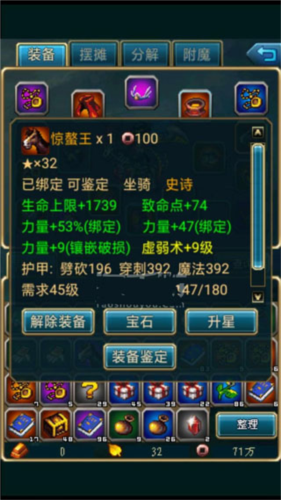 2、强化装备:使用强化石提升装备基础属性,还能镶嵌宝石以获得额外效果,大幅增强战力。