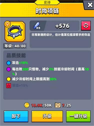 项链可选择时尚项链,金色品质能在十分钟前减少技能冷却;若拥有金色S项链,则优先使用S项链。