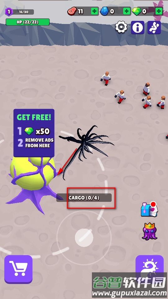 2、打开游戏,初始形态是一只蜘蛛,使用摇杆控制它进行吞噬与进化。