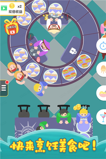新颖的旋转上菜方式带来别样体验;积累足够金币后,便能开设新餐厅,迎接下一阶段的挑战。