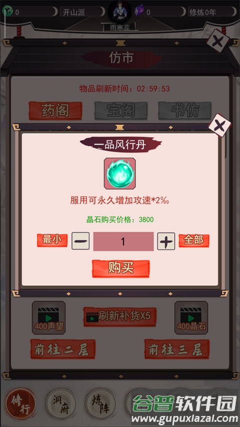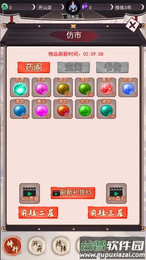 8、坊市会定期刷新各类物品,包括丹药、材料等,用途多样;