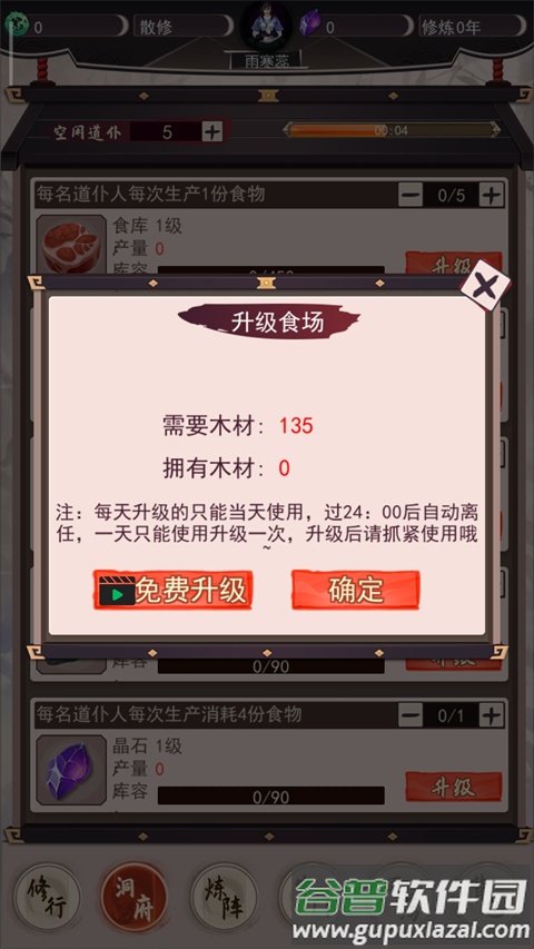 4、升级食场需要木材,每日升级效果仅限当天,次日重置;