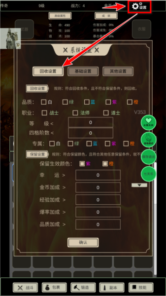 点击界面右上角的设置图标,即可打开回收功能菜单;依据个人需求,自由调整回收规则与条件。