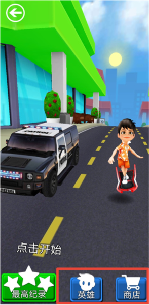 4、新手可以从最经典的跑酷传奇模式开始体验;游戏开始前,能在英雄板块挑选心仪的角色,不同英雄具备不同技能属性。