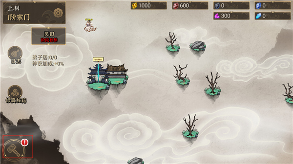4、点击建造功能,为你的宗门打下第一块基石;