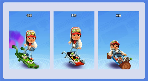 ✨新手推荐滑板:怪兽(超级跳跃+极速)、木板(二连跳+贴近地面)、火焰(二连跳+极速);这三种滑板较易获得,只需用钥匙解锁技能即可。