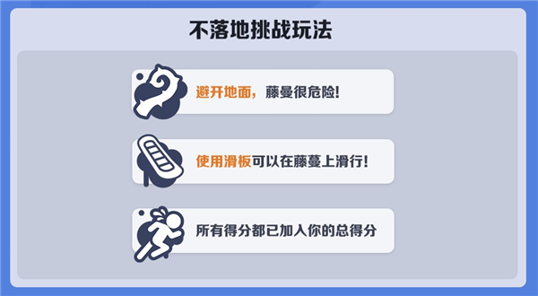 ③游戏后半段藤蔓活动加剧且障碍增多,手忙脚乱时可主动用滑板撞击车厢,促使更稳定的新平台出现。