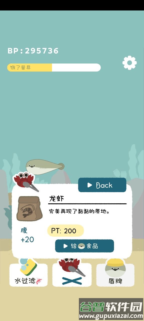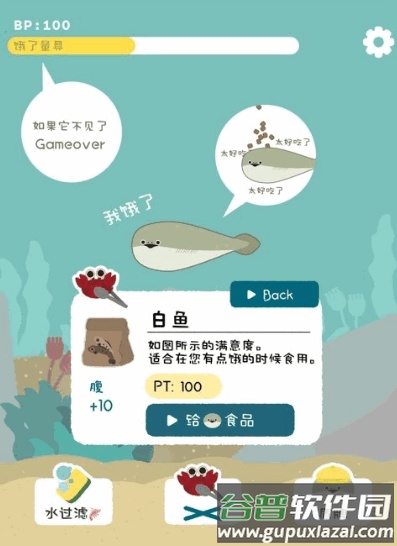 1、观察bp进度条,数值降低时需要及时投喂食物。