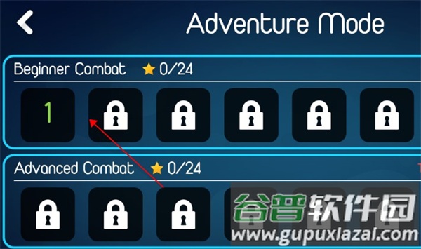 2、这里有大量等待解锁的关卡,点击第一个关卡即可进入游戏;