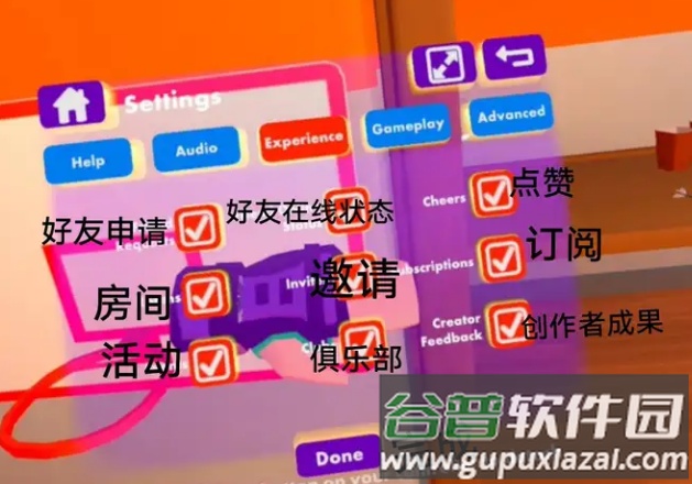 2.3、游戏设置:在设置界面中点击gameplay进入。