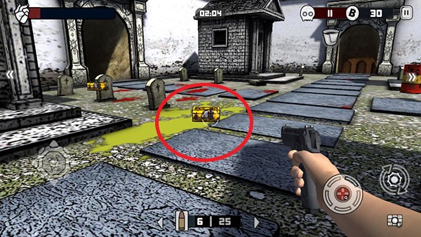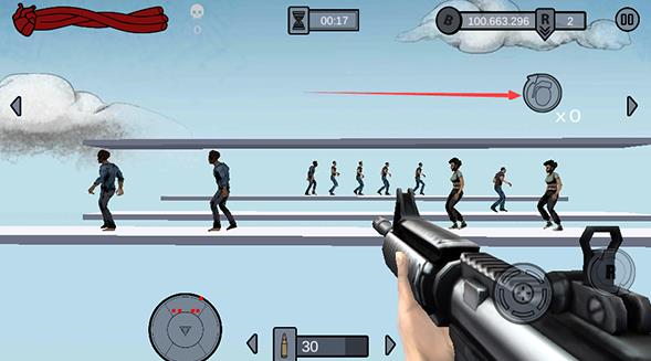 关卡开始后,左侧虚拟摇杆控制移动,右侧按钮负责攻击、换弹与切换武器;击败所有丧尸即可通关。