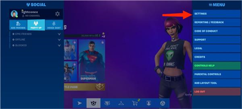 1、进入游戏后点击右侧菜单中的settings设置选项。