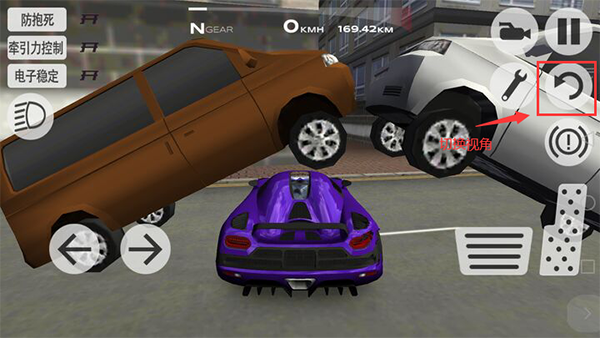 选取车辆与模式并开始游戏后,注意屏幕右上角有一个环形箭头状图标,点击该按钮即可在不同驾驶视角间循环切换。