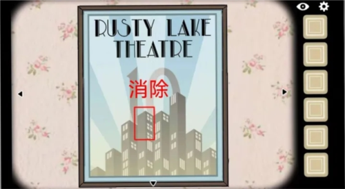 3、左边水池用气球装水;掀起水池下帘子取得火柴;水池边粘上泡泡糖,位置如下图。