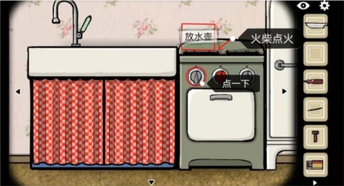 5、第四场景用钥匙打开上层柜子,拿出水壶,同时飞出一只苍蝇。