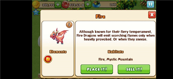 3、首先确认是否拥有对应属性的场地;若有,点击恐龙蛋,再点击PLACE IT即可将龙放入所属场地;若没有,需返回主界面购买并建设相应场地。