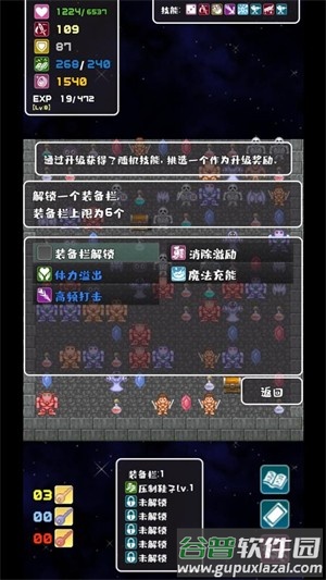 3、成长系统:升级后获得新技能选择;装备系统提供属性提升,通过战斗与探索收集更强力的道具。