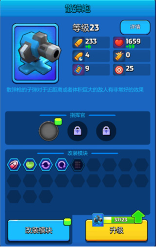说明:虽然对远距离目标易失误,但敌人会不断靠近,散弹炮对近身目标威力巨大,后期依然有使用价值。