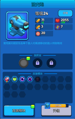 说明:激光炮输出能力不算突出,但其专属指挥官提供的控制效果非常实用,应对高速单位时表现优异。