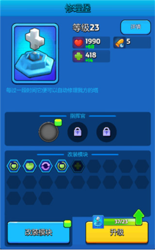 专属指挥官:机械护士(为修理的炮台提供临时护盾)