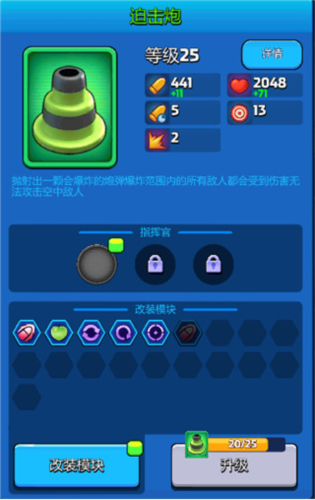 说明:新手第二个炮台,部分玩家可能青睐其指挥官的雷电特效,但整体实用性一般。
