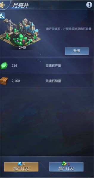 若单个月亮井的产出无法满足需求,玩家可在空地上增建多个;通常每个月亮井的生产周期约为半小时,等待期间可进行猎杀或战役挑战;通过首次通关战役关卡,也能立即获得1000灵魂石的奖励。