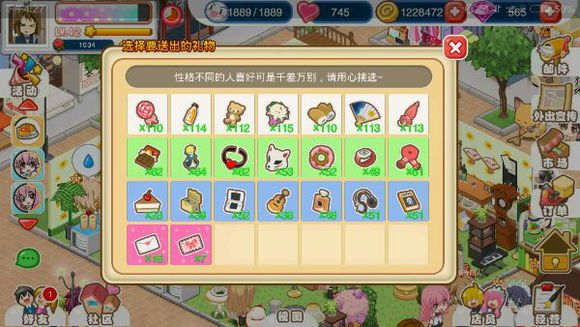 提升店员好感度可以解锁专属成就奖励及更多服装选项。赠送礼物时,注意不同性格的店员对礼物的偏好不同,匹配正确的礼物能获得更多好感度。随着游戏进程,玩家通常会积累大量礼物资源。