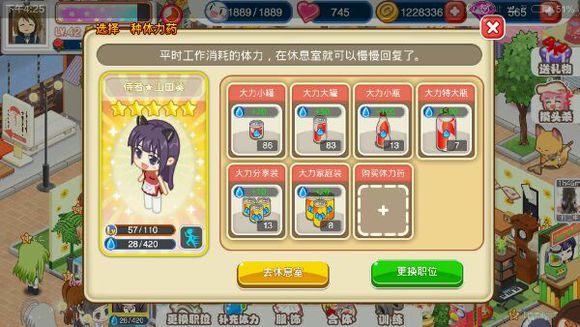 5、独创的休息室系统为店员提供了额外的活动空间。在这个区域里,店员会自主进行各种互动,玩家可以观察她们的生活状态,为经营增添更多生动细节。