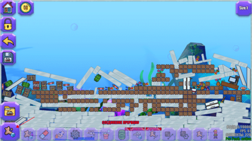 4. 点击图中标出的黄色箭头位置,此处提供了多种工具,可用来改变水体状态,甚至引发轮船爆炸。