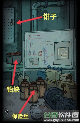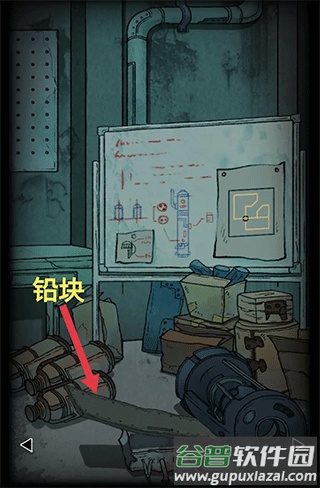 将铅块放置在铁柜门上,获得钥匙A。