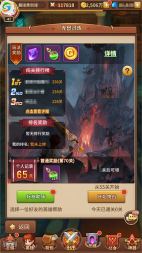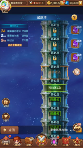 每日拥有2次免费挑战机会,挑战可获得大量英雄经验,难度越高经验越多。