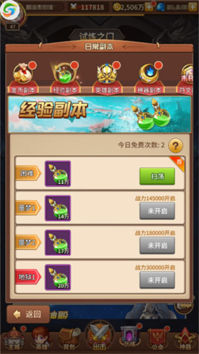 16级开启,每次通关都能获得英雄经验,每日还有3次免费扫荡机会不要错过。