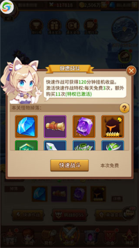在出击界面选择快速作战,可直接获取2小时的挂机收益,效率备受好评。