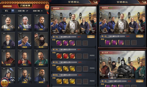 1、收集并培养图记中列出的门客,当其属性达到成就要求即可领取奖励;