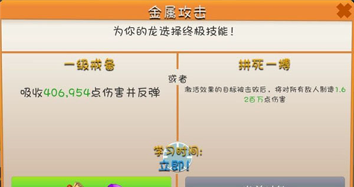 金属属性属于被动伤害技能,配合水、风、土属性时,仅靠反弹就能对敌人造成重创。拼死一搏技能放在炮灰龙身上效果极佳,其伤害随机攻击二至三名敌人,是一个兼顾辅助与输出的全面技能;眩晕效果较依赖运气,燃烧则是更稳妥的选择。