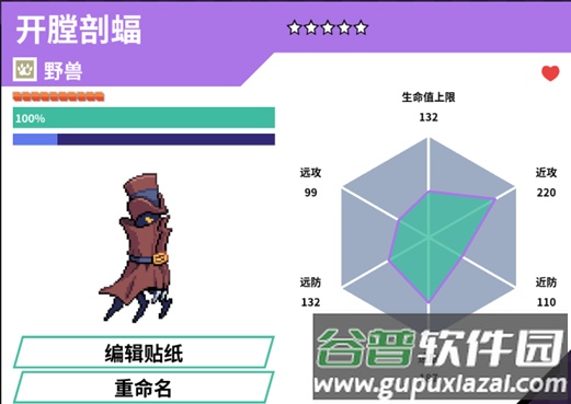 近战角色首推开膛破蝠;野兽属性克制关系简单,满级220近攻与187速度的数值分配较为出色。