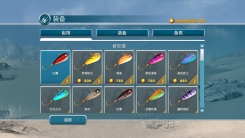 4、角色支持外观自定义,装备系统包含鱼竿、钻头、鱼钩及多种拟饵;