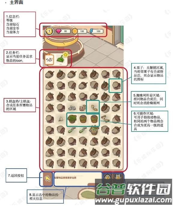 通过合成可以消除棋盘上的蜘蛛网和栗子等障碍物。