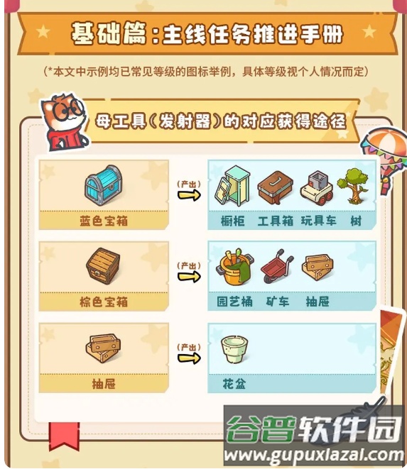生产工具主要通过玩家升级、限时活动获得的蓝色与棕色宝箱产出,种类丰富。