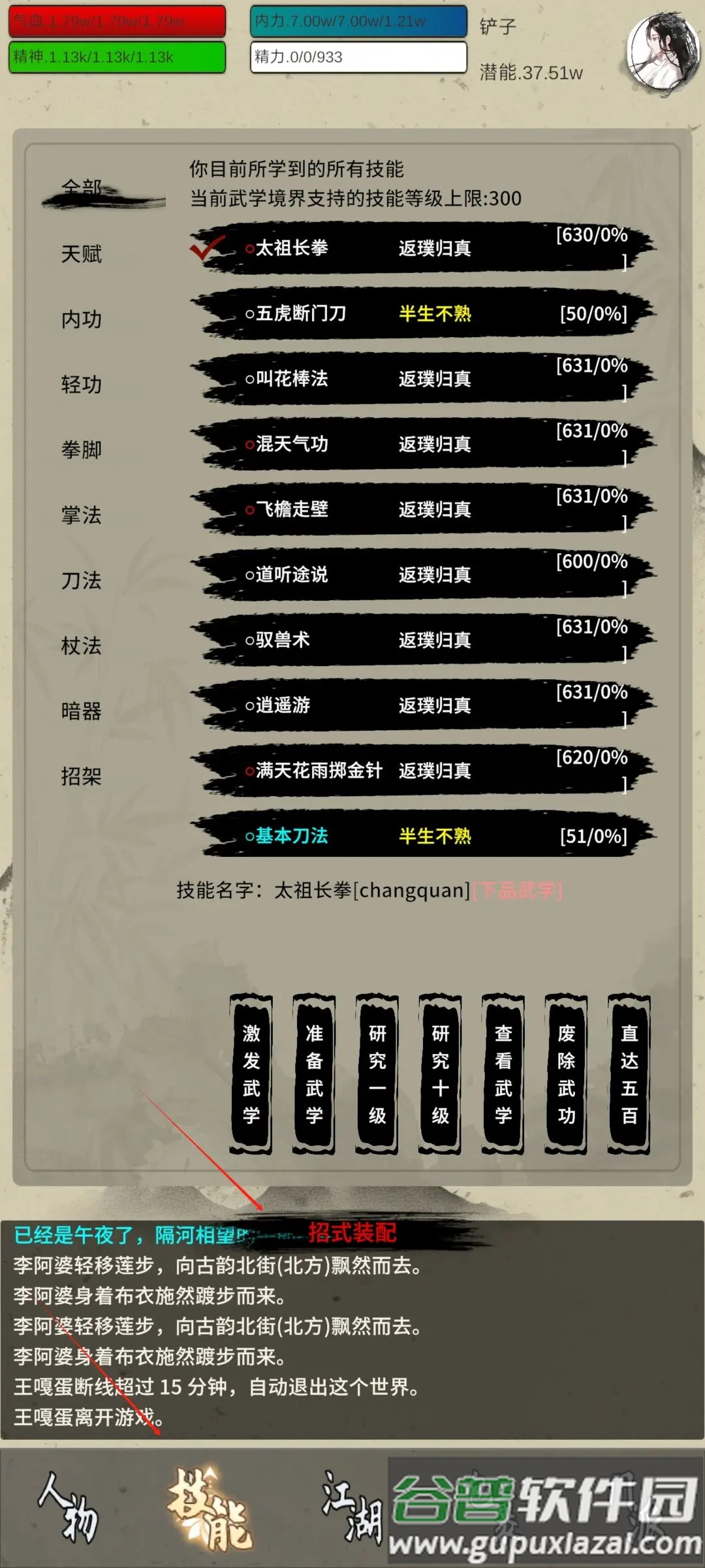 3、来到江湖页面,点击招式按钮,即可查看并使用已装配的招式。